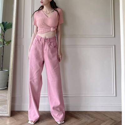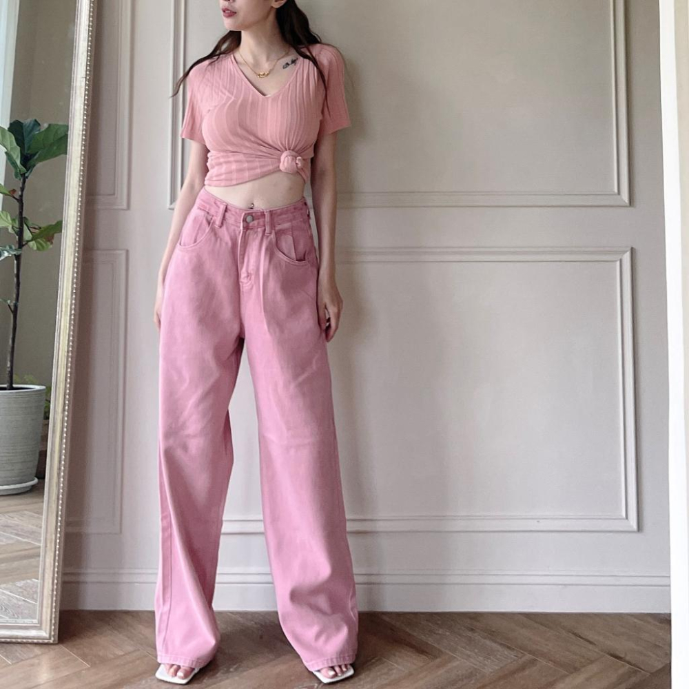 【DOE.FF】韓國亮色牛仔寬褲 (現貨) 牛仔褲 長褲女 寬褲 直筒褲 顯瘦長褲 男友褲 高腰長褲 落地長褲 女裝