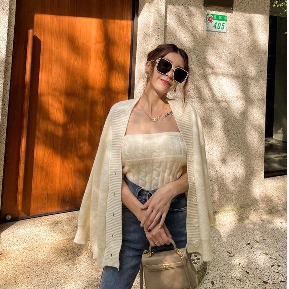 【DOE.FF】麻花針織平口背心外套兩件套 (現貨) 兩件式套裝 針織抹胸 針織寬鬆外套 針織毛衣 上衣女