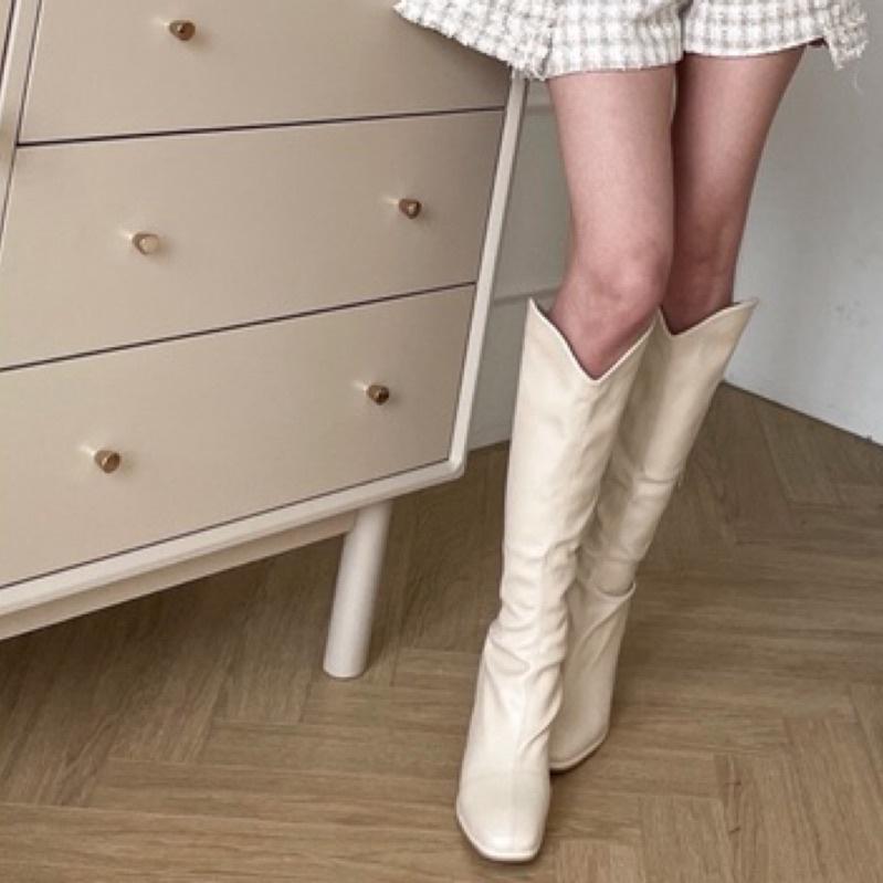 【DOE.FF】超顯瘦V口皮革膝部靴|現貨|長靴 皮靴 韓國 韓版 正韓 靴子女 過膝靴 正韓靴 時尚靴