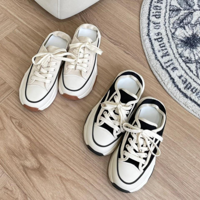 【DOE.FF】帆布鬆糕厚底懶人拖鞋|現貨|懶人拖 拖鞋 韓國拖鞋 帆布鞋 小白鞋 增高鞋 厚底鞋 球鞋 休閒鞋
