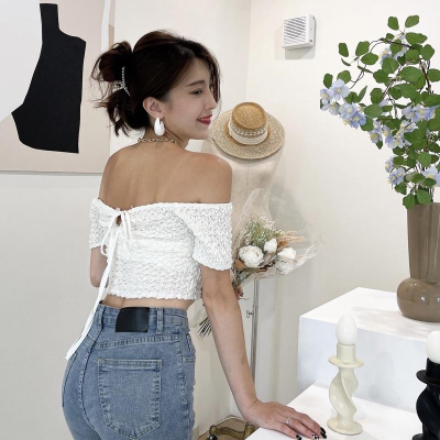 【DOE.FF】皺巴巴泡泡兩穿上衣|現貨| 一字領上衣 上衣女 短版上衣 女裝