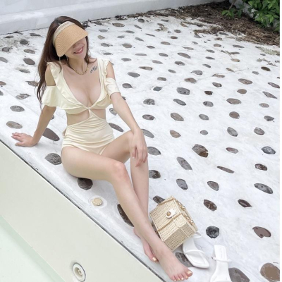 【DOE.FF】 荷葉奶黃連體bikini泳衣 (現貨) 比基尼 泳衣 辣妹風 歐美風 女裝 套裝女 性感內衣