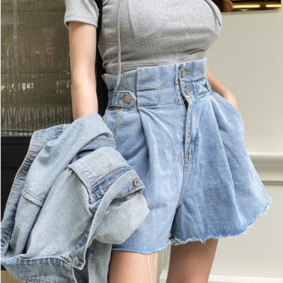 【DOE.FF】花苞A字牛仔短褲|現貨|高腰短褲 a字短褲 顯瘦短褲 牛仔短褲 韓國女裝 短褲女 褲裙 闊腿褲 ootd