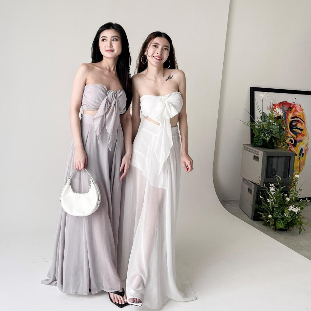 【DOE.FF】 渡假飄逸抹胸雪紡套裝 (現+預) 套裝女 渡假洋裝 長洋 長裙 禮服 抹胸上衣 BRATOP 背心女