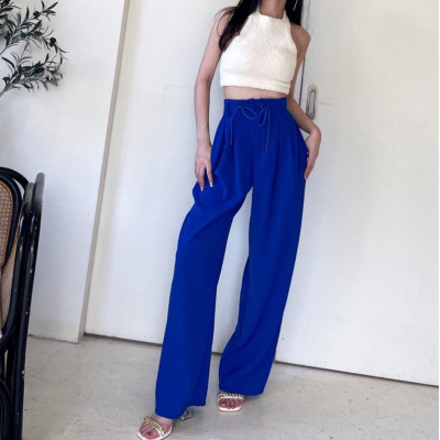 【DOE.FF】俐落抽繩落地寬褲 (現貨) 長褲女 寬褲 顯瘦長褲 喇叭寬褲 高腰長褲 闊腿褲 西裝褲 休閒長褲 女裝
