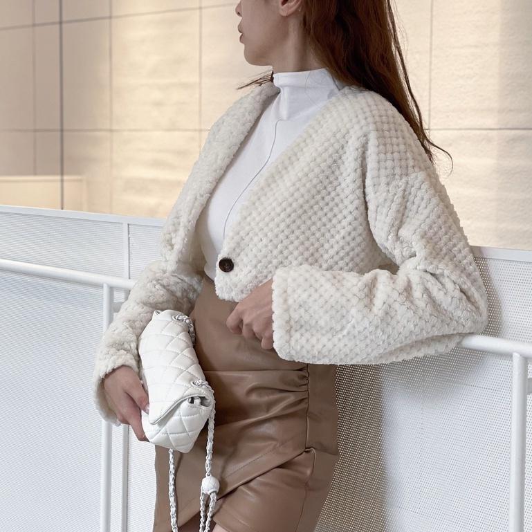 【DOE.FF】熊寶寶單釦短外套 (現貨) 短版外套 毛毛外套 西裝外套 外套女 厚外套 保暖外套 女裝 毛衣女 外套
