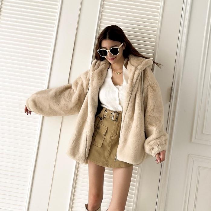【DOE.FF】新品上市兔毛鋪棉寬鬆外套 (現貨) 毛毛外套 連帽外套 寬鬆外套 保暖外套 鋪棉外套 厚外套 大衣外套