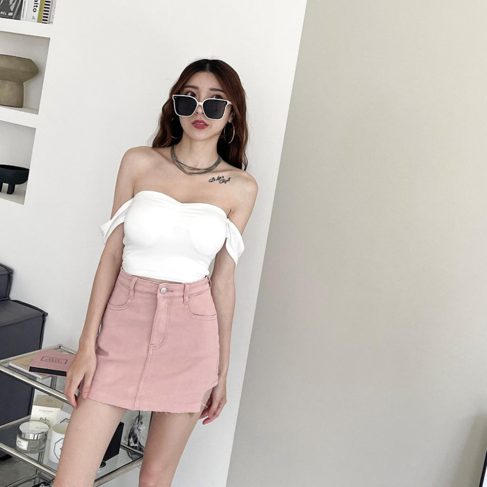 【DOE.FF】 粉色包臀顯瘦褲裙 (現+預) 牛仔短裙 短裙女 褲裙女 顯瘦短裙 高腰短裙 包臀短裙
