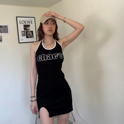 【DOE.FF】歐美英字掛脖背心短洋 | 現貨 | 洋裝 連身裙 背心女 包臀洋裝 歐美 韓國 辣妹洋裝 快速出貨