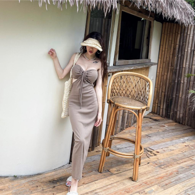 【DOE.FF】 抽繩挖腰兩穿帶杯長洋 (現貨) 連身裙 連身洋裝 洋裝 連體洋 連體裙 孕婦裝 度假洋裝 顯瘦洋裝