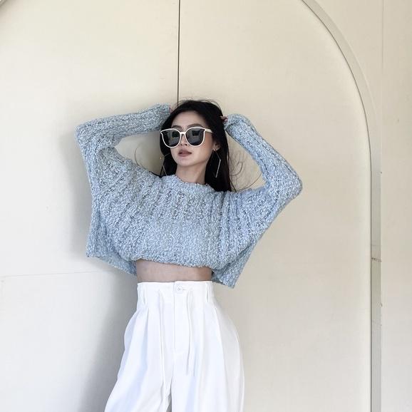 【DOE.FF實】 糖霜麻花圓領短針織衣 (現貨) 圓領毛衣 針織毛衣 短版毛衣 毛衣女 針織衫 短版上衣 上衣女 女裝