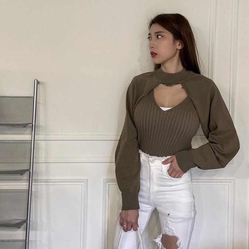 【DOE.FF】澎袖套頭兩件式造型上衣|現貨|