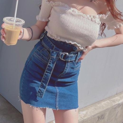 【DOE.FF】造型丹寧高腰牛仔短裙 (現貨) 牛仔裙 牛仔短裙 高腰短裙 裙子 短裙 顯瘦短裙 褲裙 女裝 辣妹風