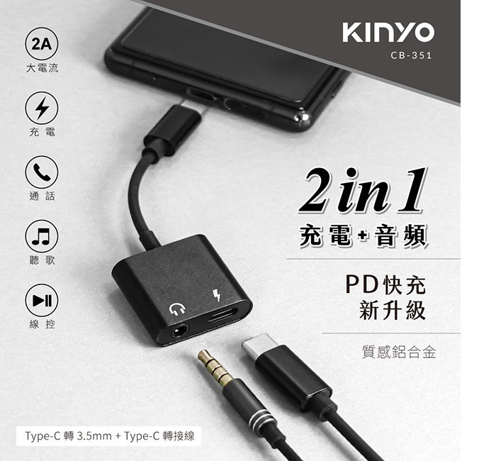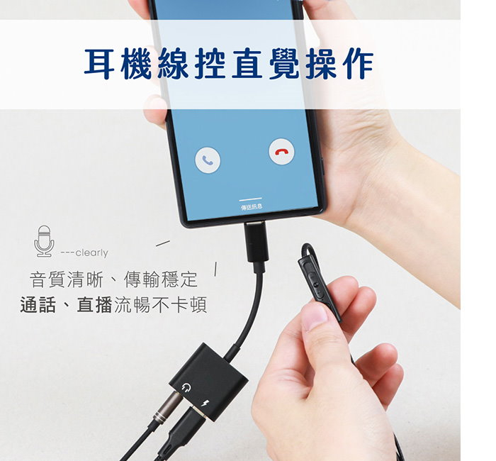 .通話+充電二合一,解決單孔設備困擾。