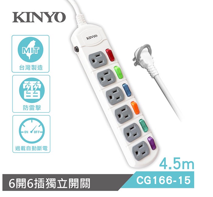 #CG166-6 #六開六插安全延長線 (6尺)