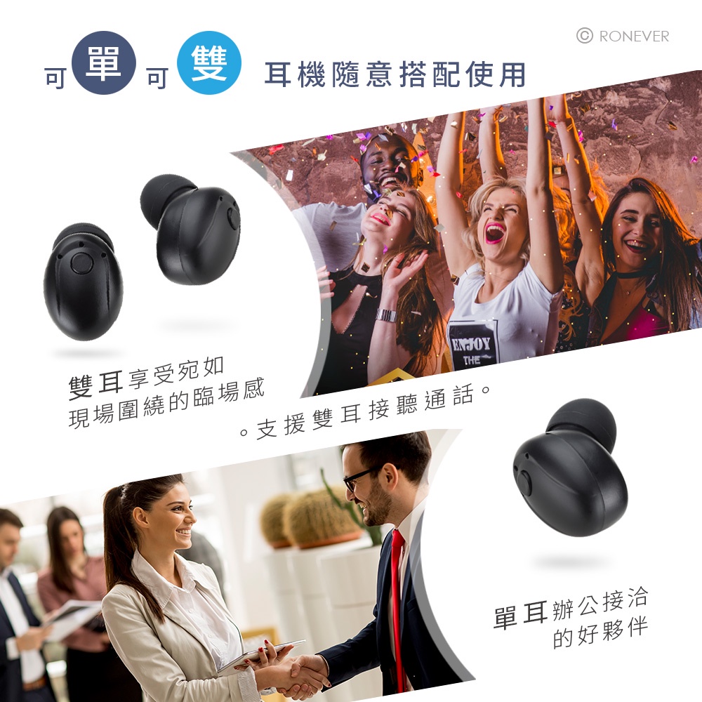 雙耳機可單耳分別獨立使用,支援雙耳接聽通話。