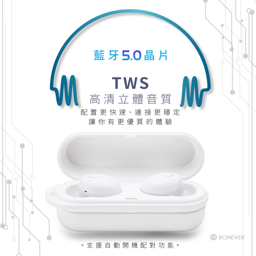 TWS藍牙5.0晶片,支援自動開機配對功能。
