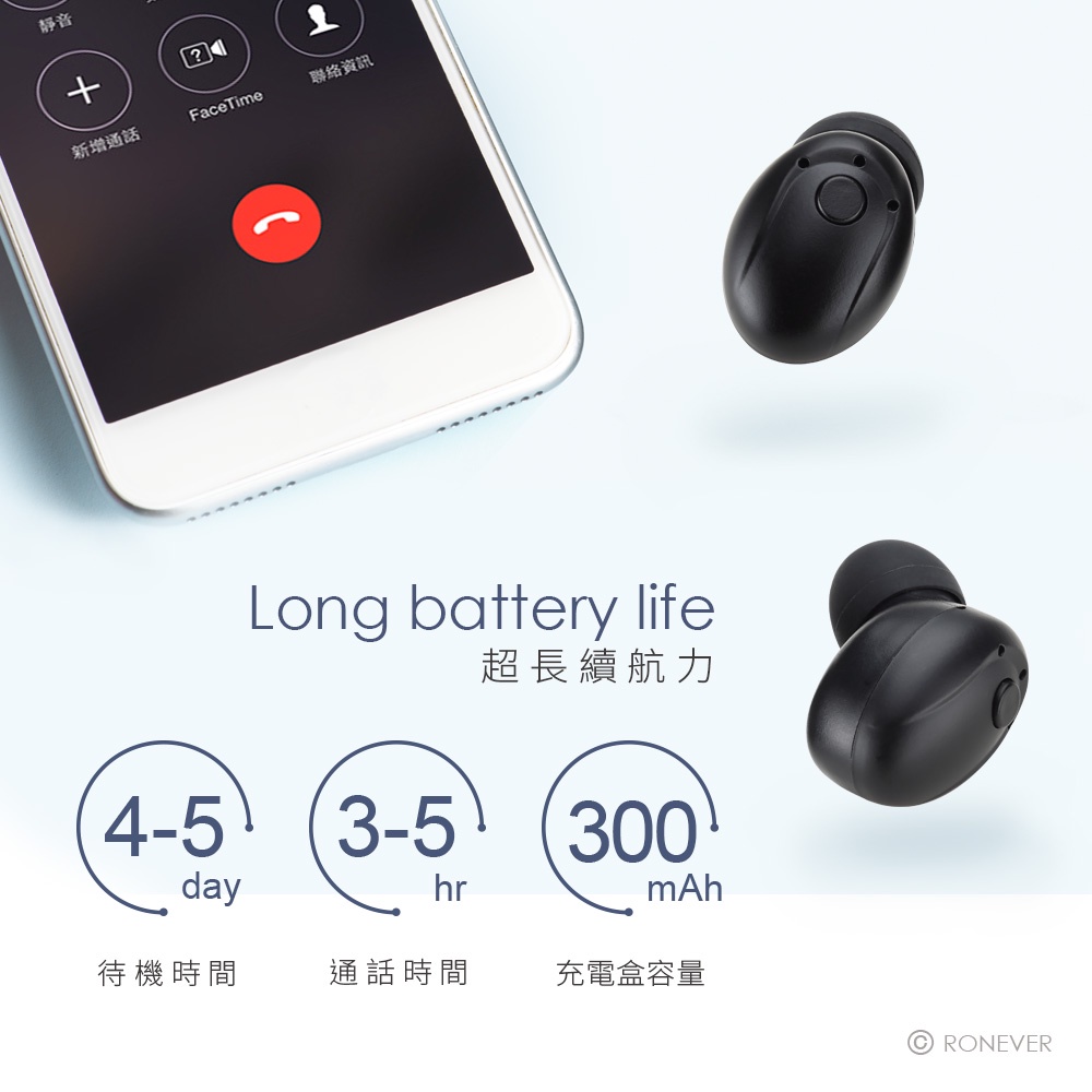 電池容量 : 50mAh (耳機)/300mAh (充電盒)