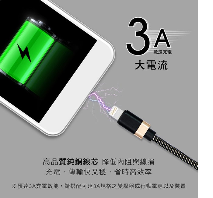 #3A大電流 #蘋果充電線 #蘋果傳輸線 #充電+傳輸 #3年保固