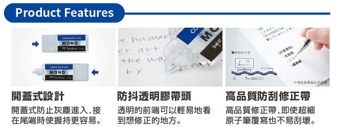 高品質防刮修正帶,即使超細原子筆覆寫也不易刮壞。