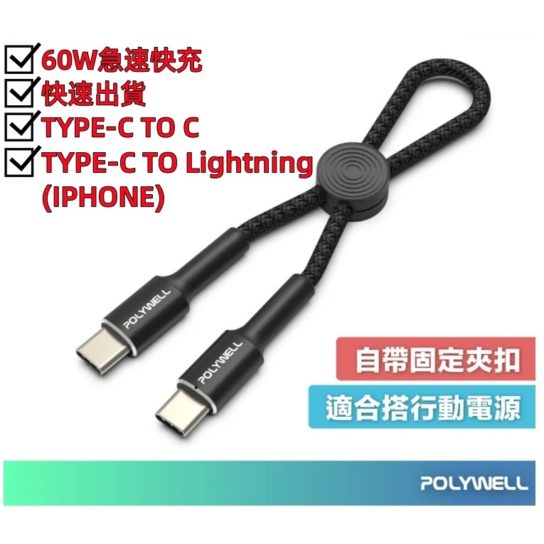 商品名稱: Type-C To Type-C /Type-C To Lightning 極短收納PD快充線