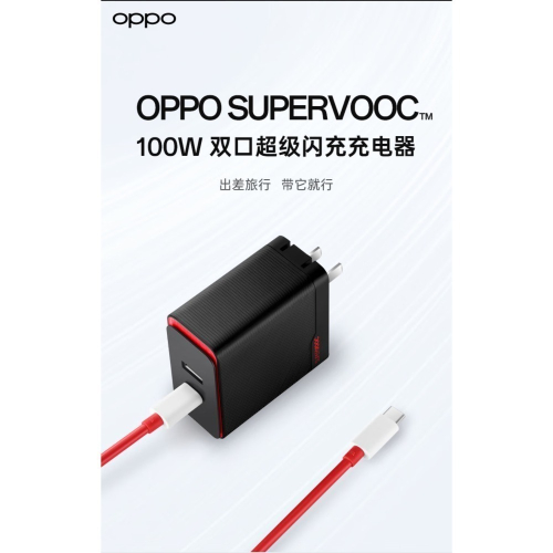 全新 OPPO 100w 雙孔 閃充充電器套裝組