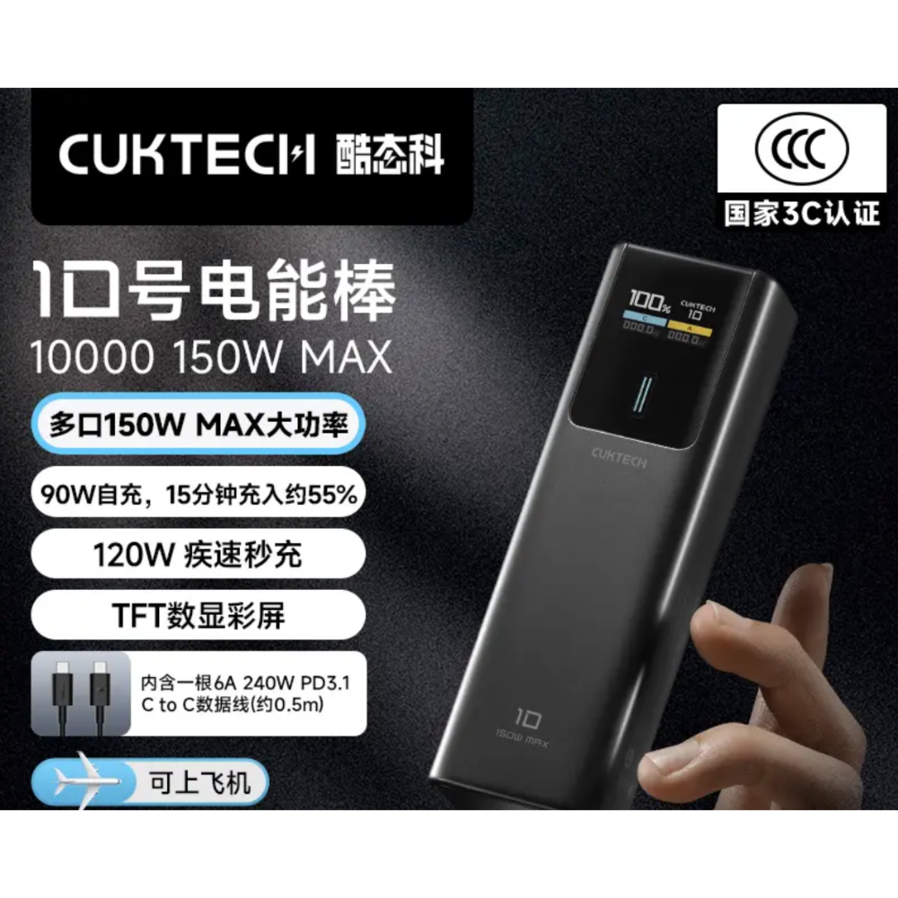 CUKTECH 酷態科 行動電源10000mAh 黑色