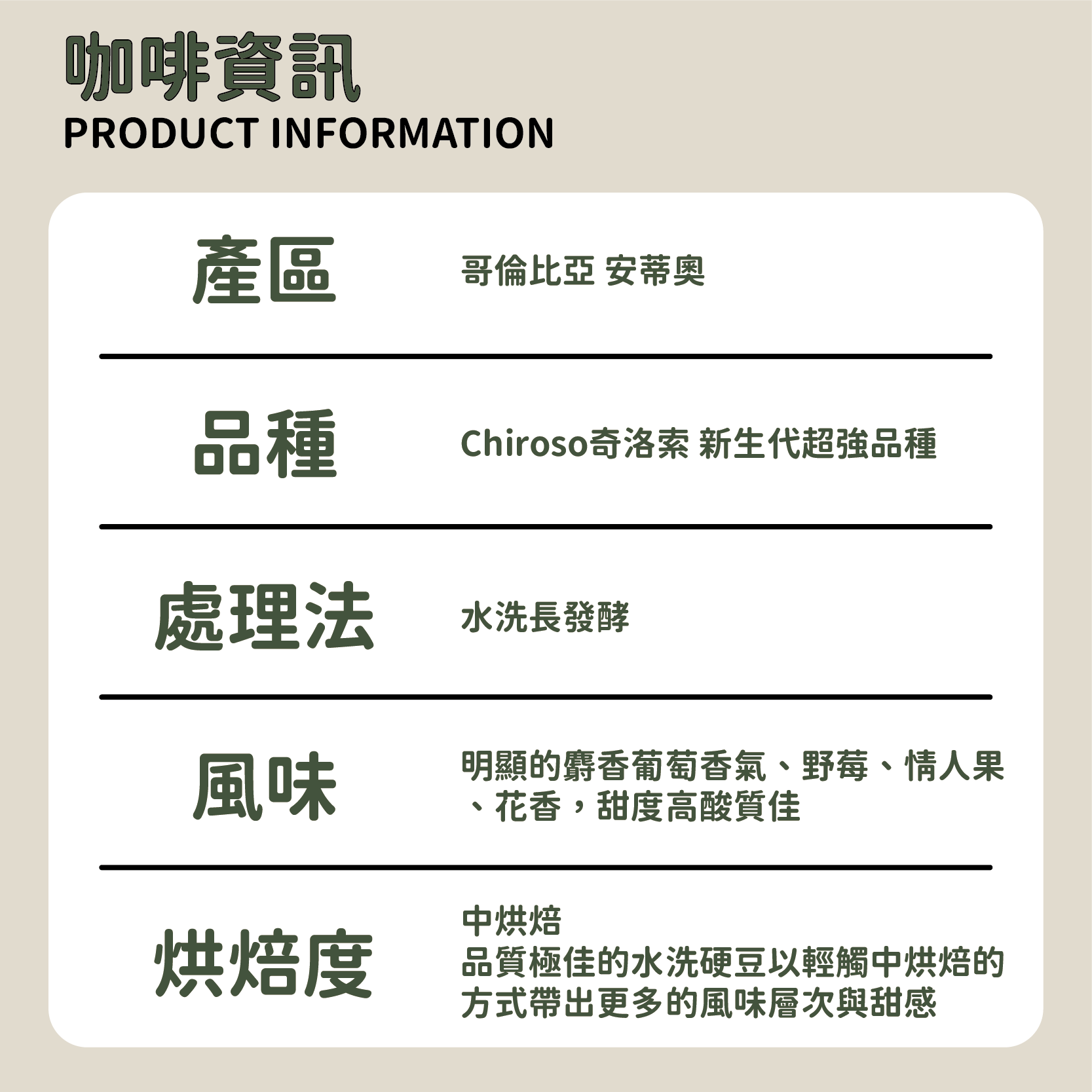 [日日咖啡]哥倫比亞 冠軍莊園超強品種 奇洛索 咖啡豆 黑咖啡 美式咖啡 濃縮咖啡 義式咖啡 拿鐵 冷萃咖啡 手沖