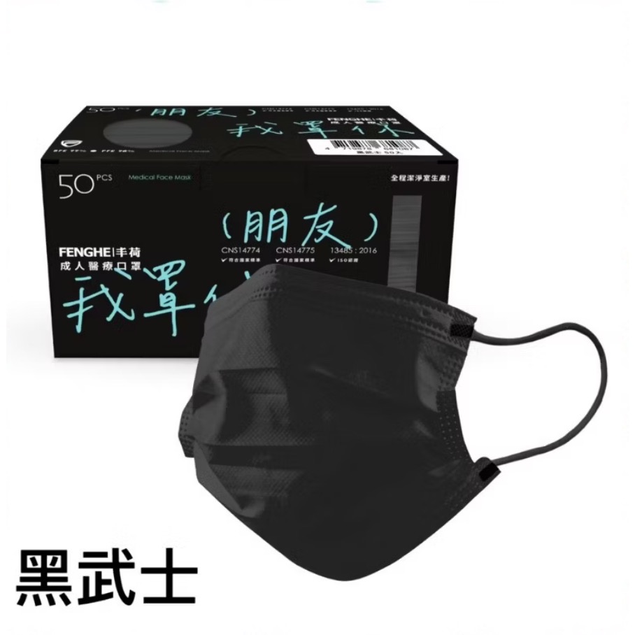 ●商品名稱:荷康『極致黑』平面醫療口罩 50入/盒