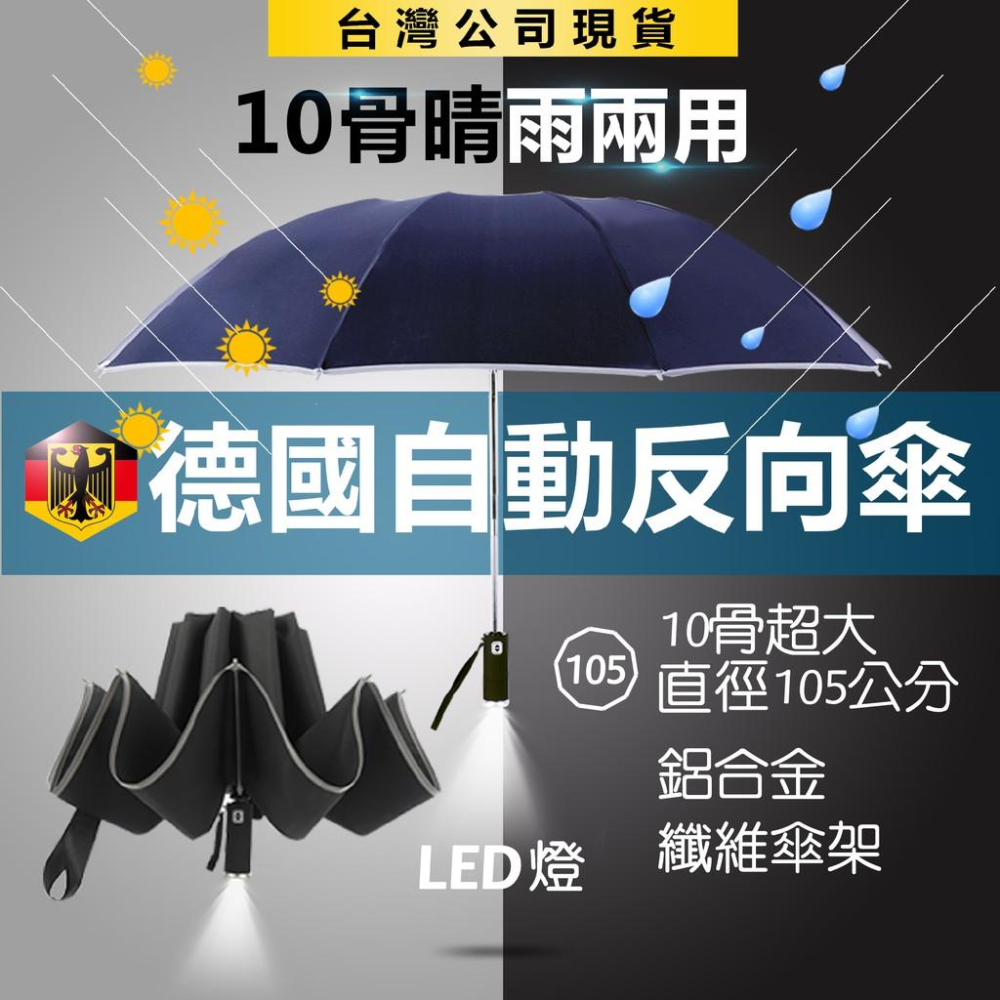 【材質】 抗強風鋁合金纖維十骨傘架+105cm直徑雙面撞擊布面+創新反向傘+LED輔助照明燈+夜間高反光設計螢光條