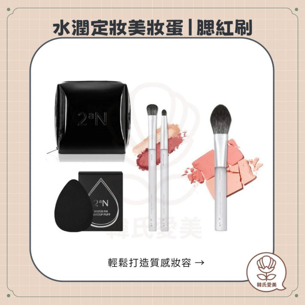 【韓氏愛美】2an 怡豔 水潤定妝美妝蛋 水輕柔腮紅刷 黑色化妝包 化妝包 彩妝工具 美妝蛋 腮紅刷 腮紅