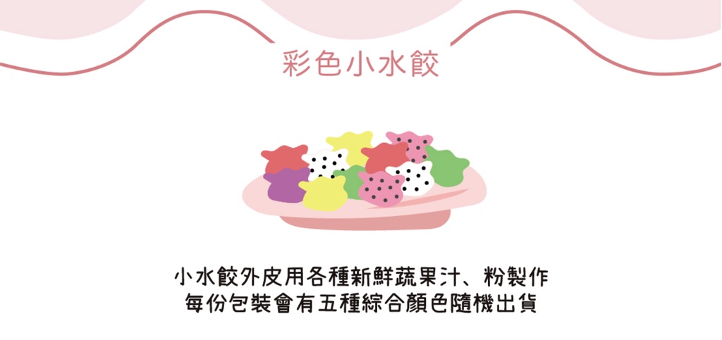產品內容:彩色小水餃(出貨時顏色是隨機出貨,最少五種顏色)