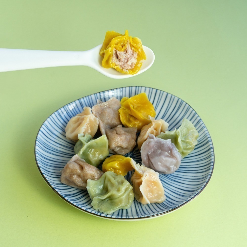 水餃皮成份:麵粉、水、地瓜葉、紅蘿蔔、火龍果、全麥粉、紅麴粉、 紫薯粉、黑芝麻粉、薑黃粉