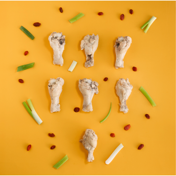 三口組寶貝最愛啃翅小腿,簡單使用青蔥、大蒜、枸杞增加風味,吃起來吮指回香,無鹽無負擔。