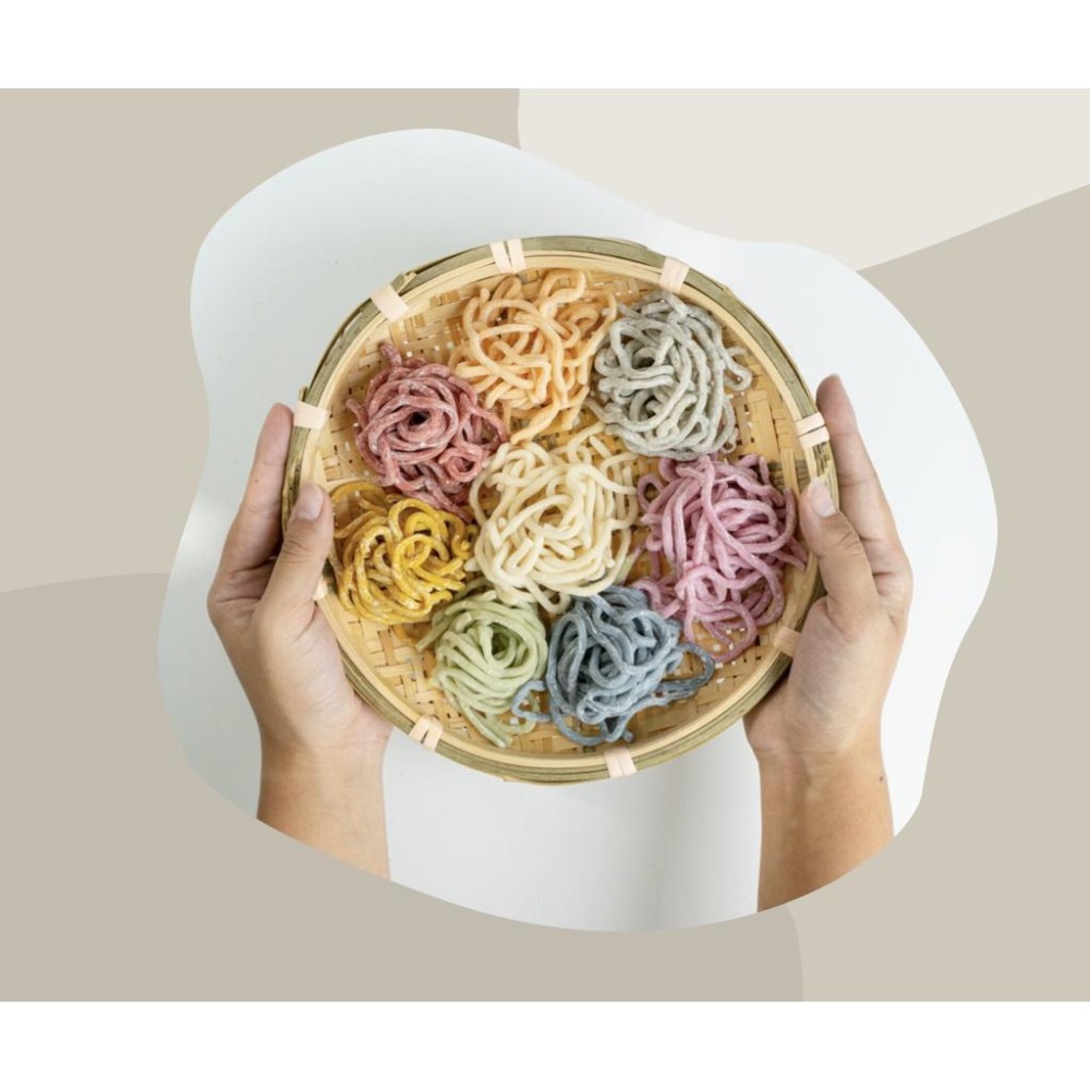 產品內容:彩色拉麵(出貨時顏色是隨機出貨,最少五種顏色) 產品成份:麵粉、水、地瓜葉泥、紅蘿蔔泥、火龍果泥、紅鳳葉泥、全麥粉、紅麴粉、紫薯粉、黑芝麻粉、薑黃粉、竹炭粉 產品規格:家庭大包裝|600克 (300克兩入) 保存期限:一個月 保存方式:冷凍-18度,並於開封後儘速食用 製造產地:台灣 食用年齡:10M+、適合咀嚼吞嚥能力成熟的孩子食用 產品調味:無添鹽巴、無添加味精 注意事項:本產品為生鮮食品須充分烹調、加熱才可食用