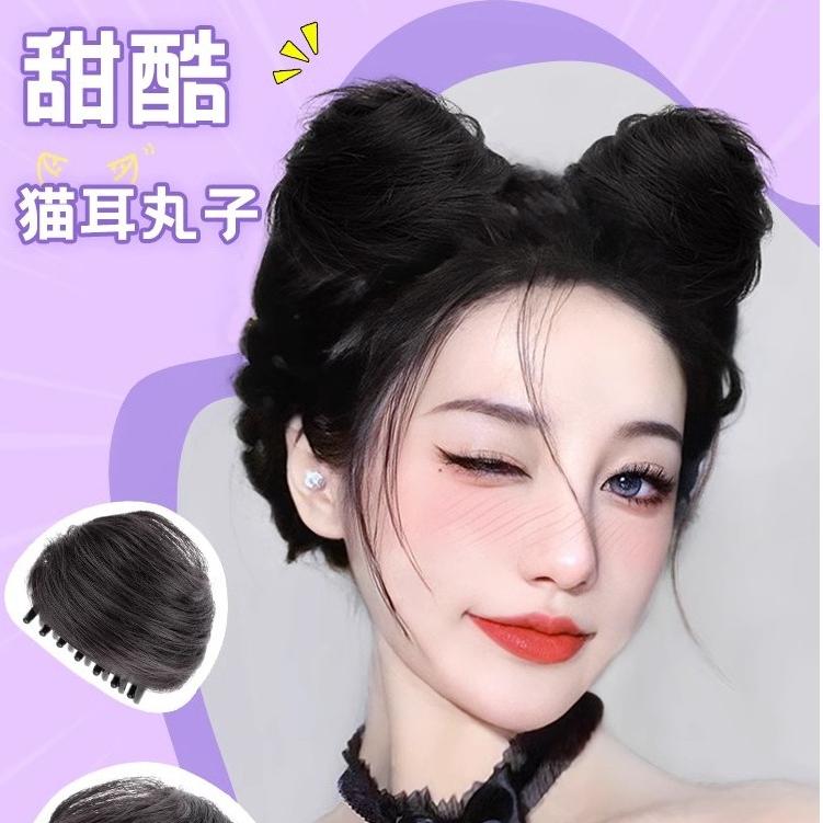 台灣現貨 貓耳雙丸子頭抓​​夾假髮髮夾髮卡髮包髮飾萬聖節辣妹裝扮cos頭飾