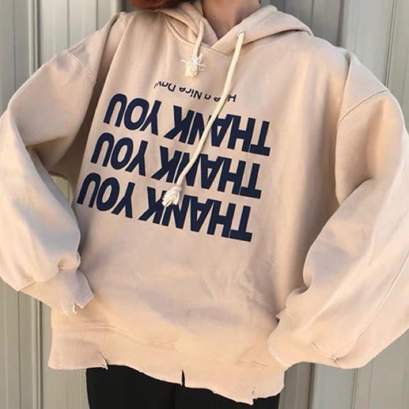 現貨出清 韓版 寬鬆 下擺剪破 厚款大學t 連帽T 帽T 帽踢 字母 寬版上衣 衣服 穿搭 時尚 流行款 設計款 上衣