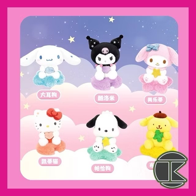 三麗鷗星月雲毛絨盲盒 美樂蒂 怕洽狗 大耳狗 玩具 收藏 娛樂 一中盒6入