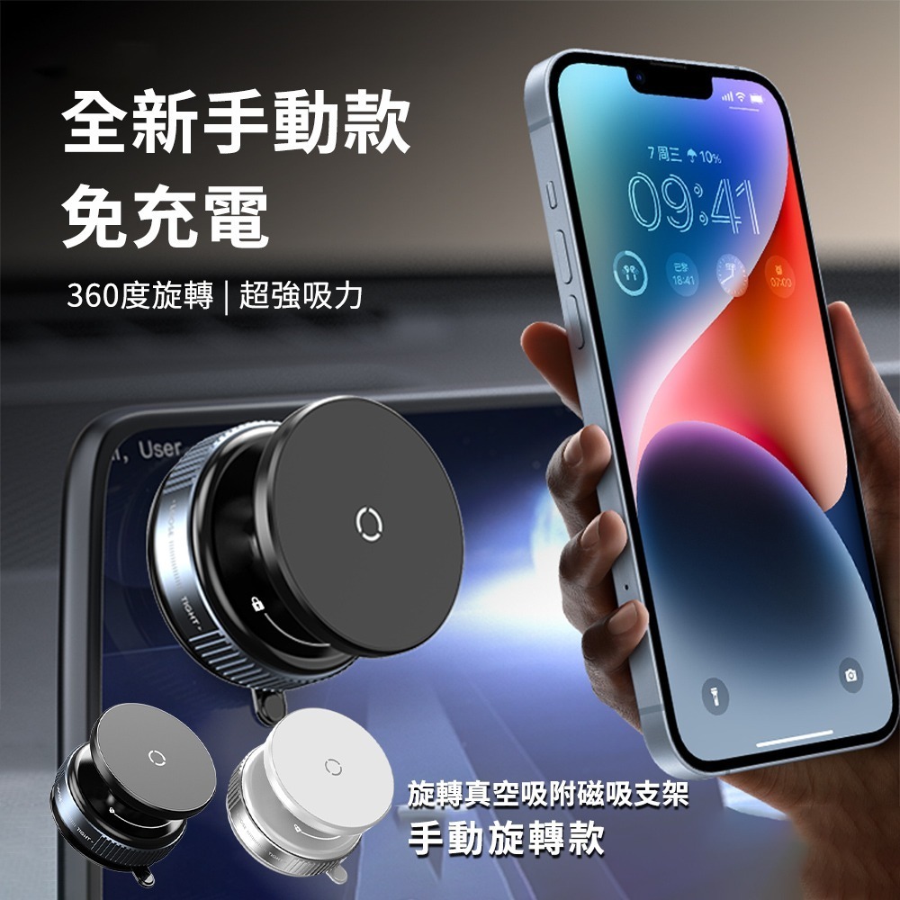 【Timo】360°旋轉真空吸附磁吸手機支架(手動旋轉款)