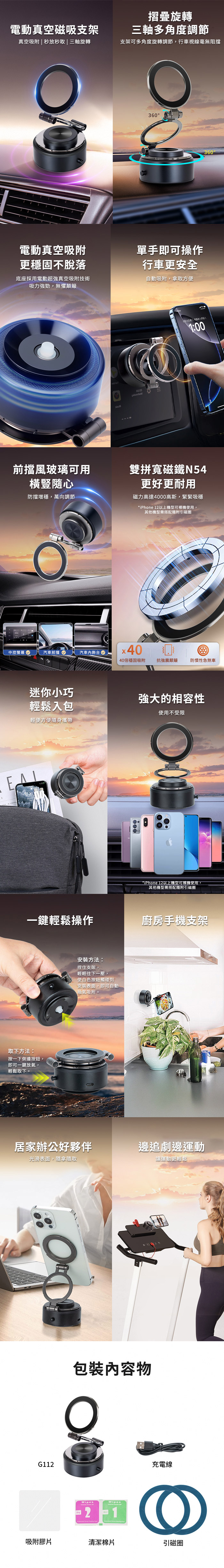 內容物:磁吸支架+引磁圈+ USB-A to USB-C充電線+清潔棉片