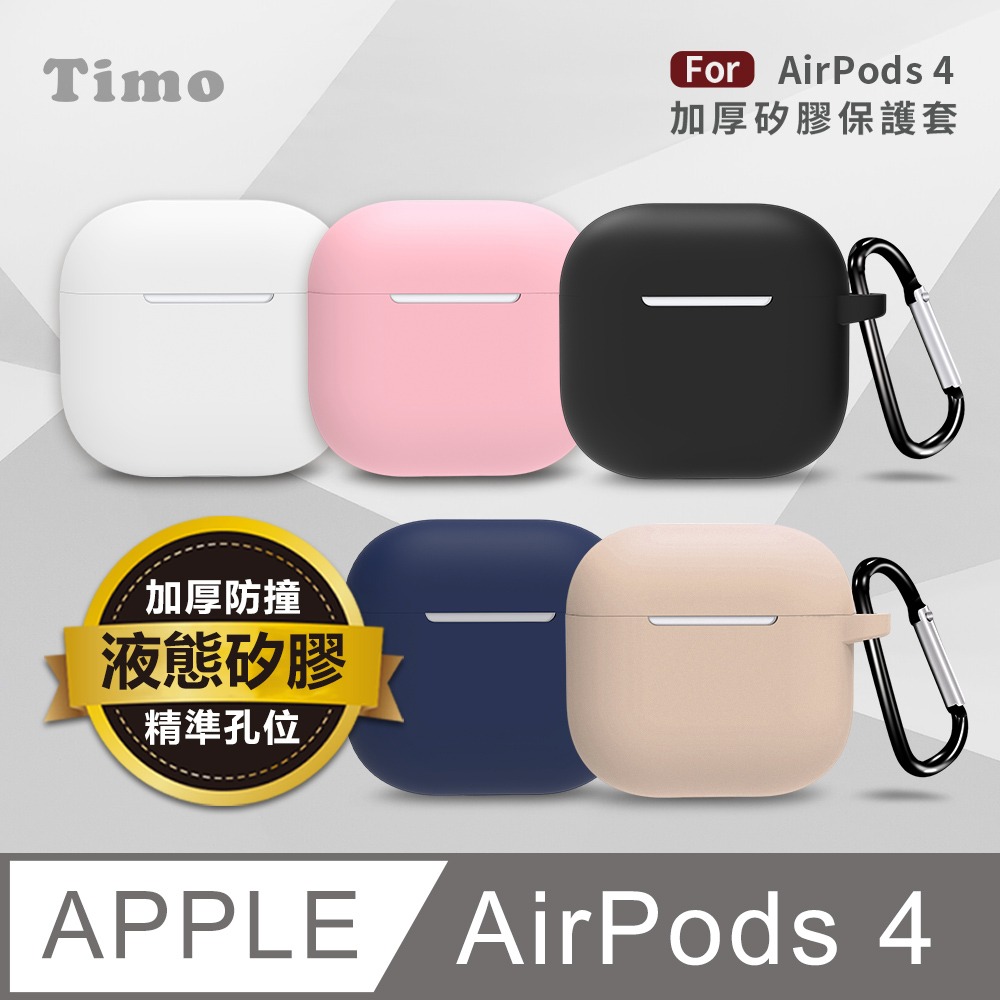 【Timo】AirPods 4 純色矽膠加厚保護套 (附扣環)