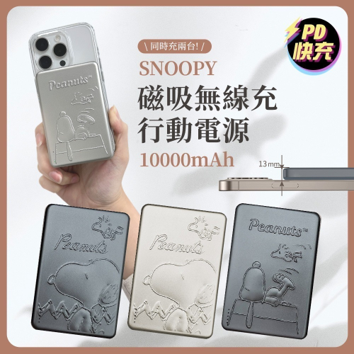 【SNOOPY史努比】浮雕限定款 20W PD超薄磁吸無線快充行動電源10000mAh