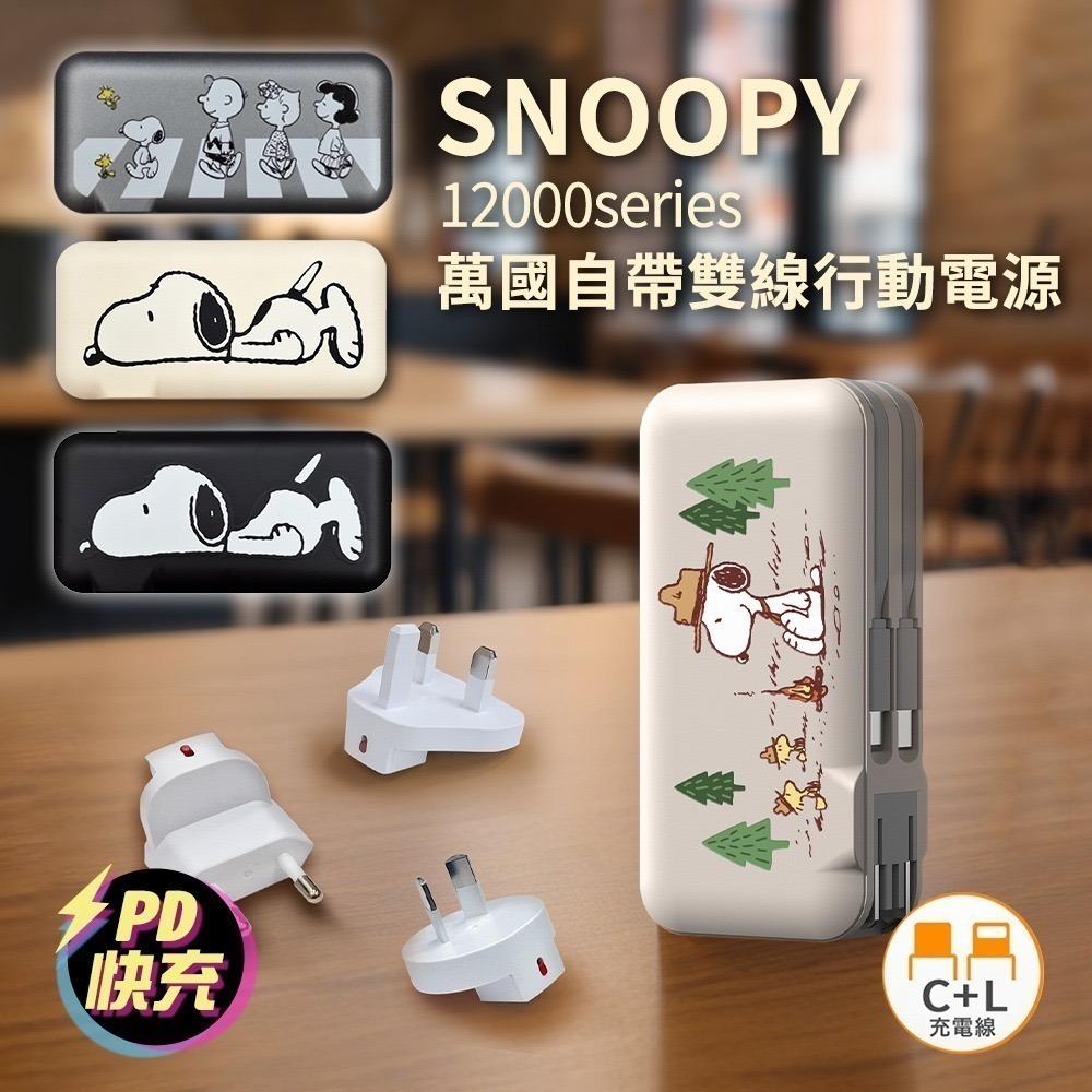 【SNOOPY史努比】12000serice 20W PD快充 自帶雙線 萬國+AC行動電源