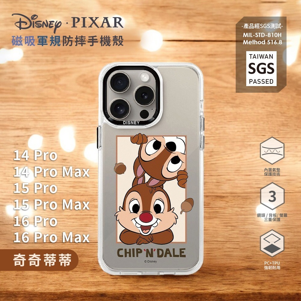 【Disney迪士尼】for iPhone 16 / 15 /14 系列 軍規防摔透明磁吸手機殼|奇奇蒂蒂