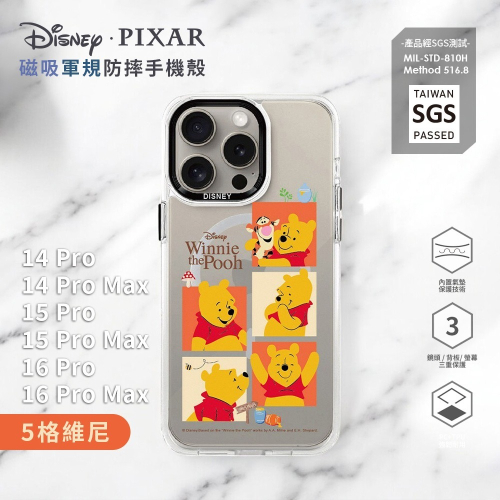 【Disney迪士尼】for iPhone 16 / 15 /14 系列 軍規防摔透明磁吸手機殼|5格維尼