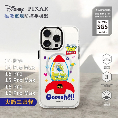 【Disney迪士尼】for iPhone 16 / 15 /14 系列 軍規防摔透明磁吸手機殼|火箭三眼怪