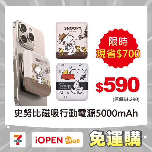 【7-ELEVEN 門市團購】SNOOPY史努比 晶磁系列 PD快充 迷你磁吸無線充行動電源 5000mAh