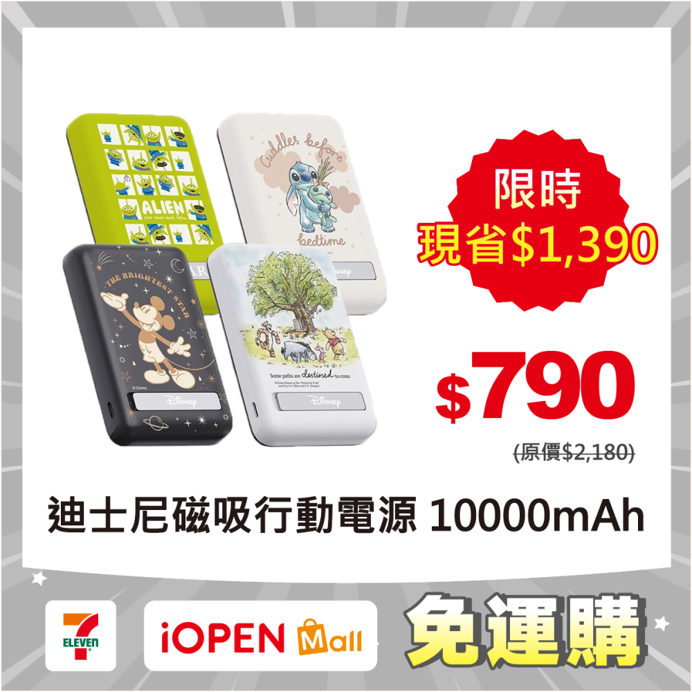【7-ELEVEN 門市團購】Disney迪士尼 晶磁系列 PD快充 磁吸無線充支架行動電源 10000mAh