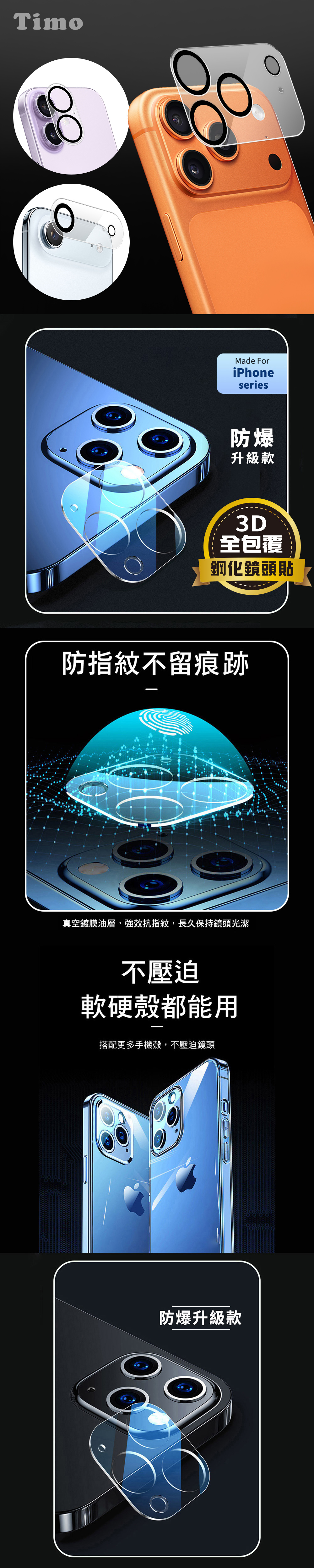 【Timo】iPhone 17 Pro Max/17 Pro/Air/17 鏡頭專用 3D立體透明全包覆抗刮保護貼