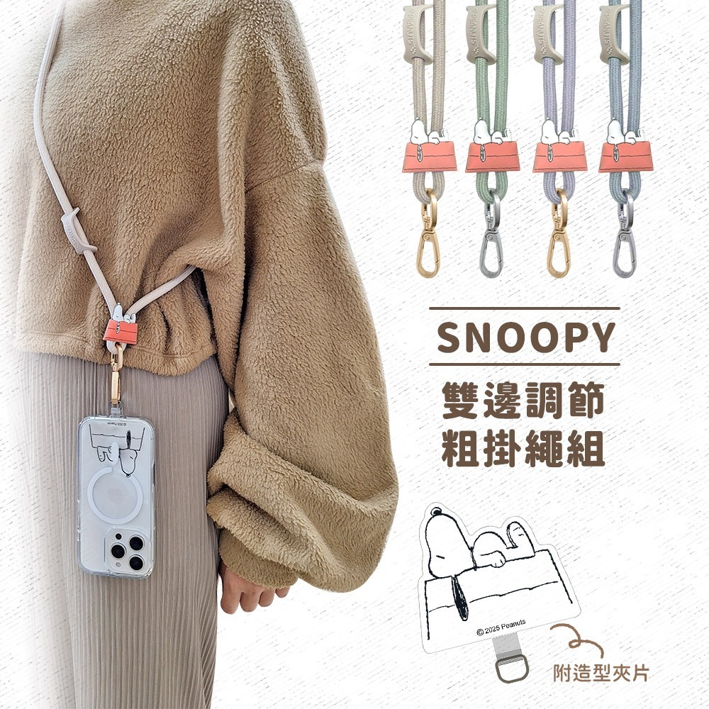 【買一送一】【SNOOPY史努比】雙邊調節粗手機夾片掛繩組(附造型夾片)